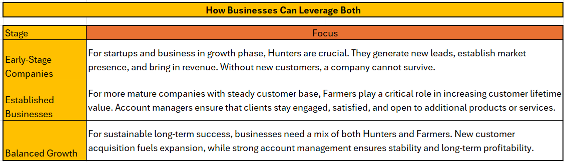 The Hunter vs Farmer approach isn’t about choosing one over the other- it’s about integrating both to create a powerful sales engine. Businesses that successfully balance new client acquisition with strong account management will see steady, scalable revenue growth.